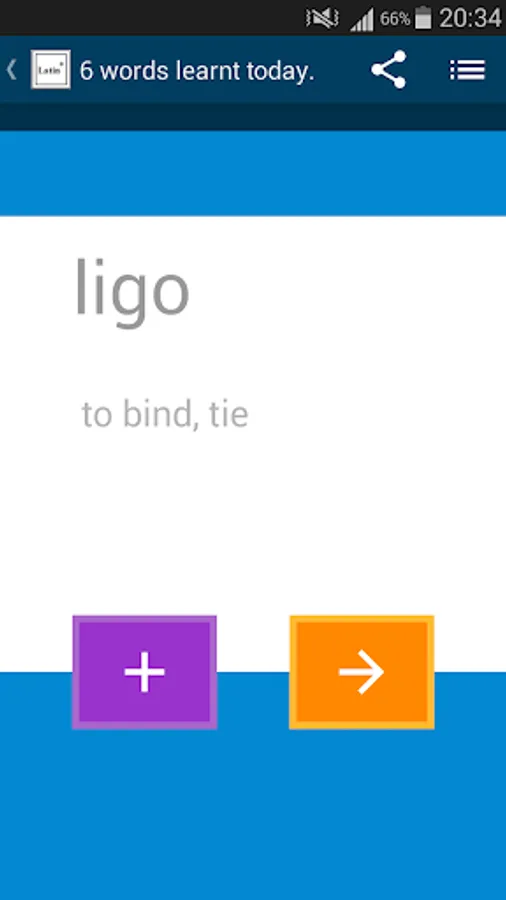 Pace yourself as you go through the almost a thousand common and popular Latin words available in the app. In just a matter of weeks, you will have an essential knowledge of the Latin vocabulary !