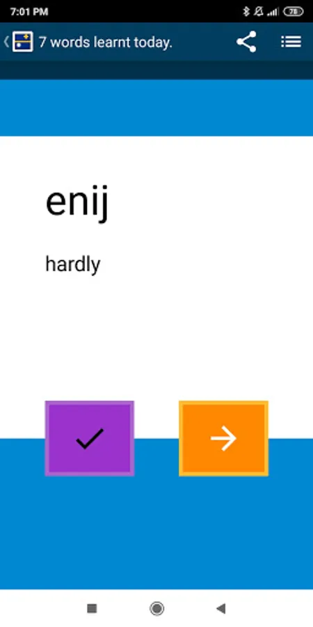 All words 'learnt' are tested repeatedly thereafter, on a basis of decreasing regularity, if answered correctly, as you gain familiarity with the said word. Vice versa, if incorrectly answered, the app will adjust to test you more on the word, or 'deactivate' it, while you learn other words meanwhile.
