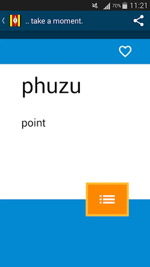 Pace yourself as you go through the almost a thousand common and popular Zulu words available in the app. In just a matter of weeks, you will have an essential knowledge of the Zulu vocabulary !