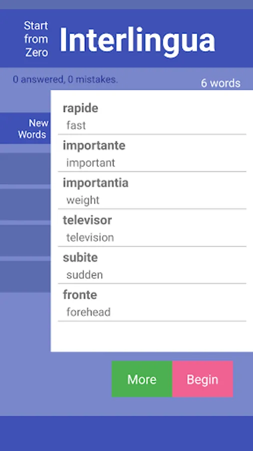 Start from zero and grow your Interlingua vocabulary with this simple but efficient app. Make your way through the thousands of the most commonly used Interlingua words and phrases.