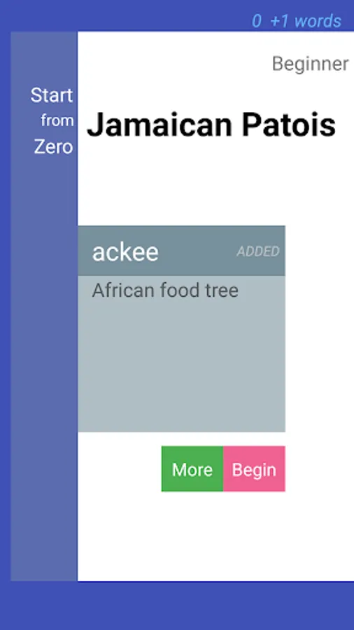 Starting from scratch, 'collect' up to 9 Jamaican Patois words after each session and learn at your own pace. StartFromZero_Jamaican Patois app is a really straightforward, intuitive and effective flashcard and quiz app that helps you build your Jamaican Patois vocabulary starting today !
