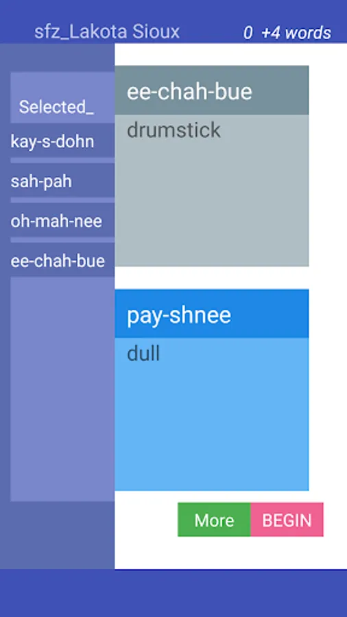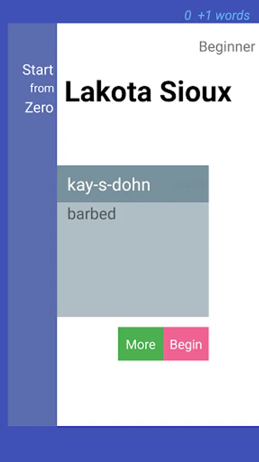 Starting from scratch, 'collect' up to 9 Lakota Sioux words after each session and learn at your own pace. StartFromZero_Lakota Sioux app is a really straightforward, intuitive and effective flashcard and quiz app that helps you build your Lakota Sioux vocabulary starting today !