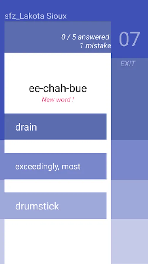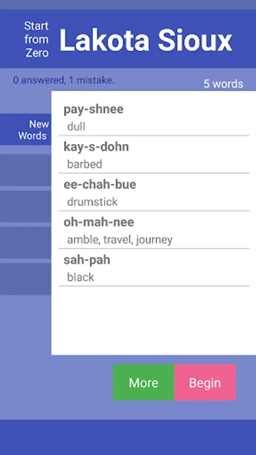 Start from zero and grow your Lakota Sioux vocabulary with this simple but efficient app. Make your way through the thousands of the most commonly used Lakota Sioux words and phrases.