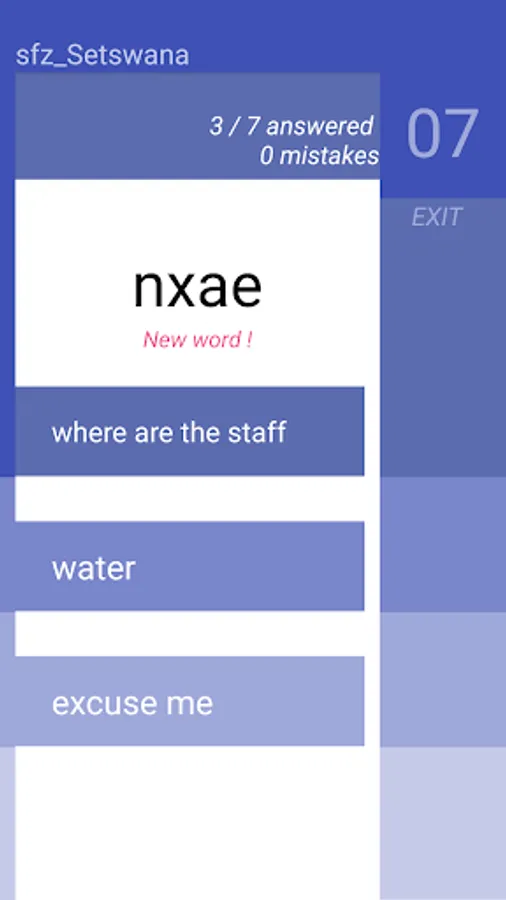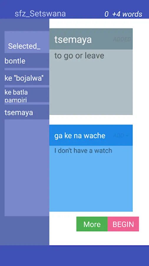 Starting from scratch, 'collect' up to 9 Setswana words after each session and learn at your own pace. StartFromZero_Setswana app is a really straightforward, intuitive and effective flashcard and quiz app that helps you build your Setswana vocabulary starting today !