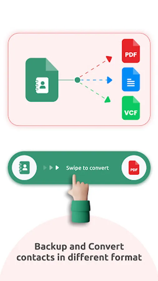 - This app is very useful to take backup of your phone book in 3 different formats PDF,VCF and Text file.