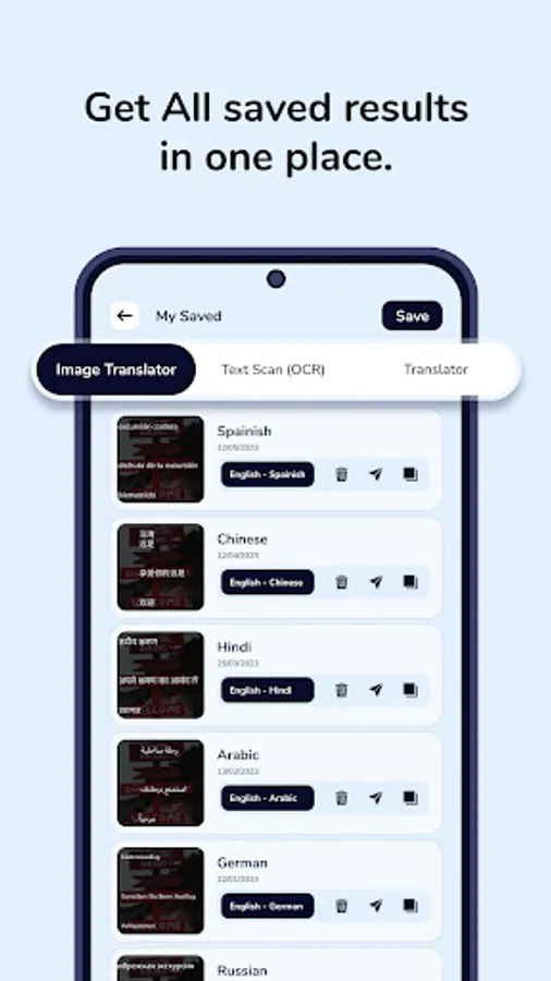 ▪ Image Translator: Simply capture a picture, select the source language of the image, and choose the destination language. You will receive an exact translation of the text from the image, along with the precise location. Share the translated image anywhere, and if you prefer, you can extract the text from the image and share it separately.
