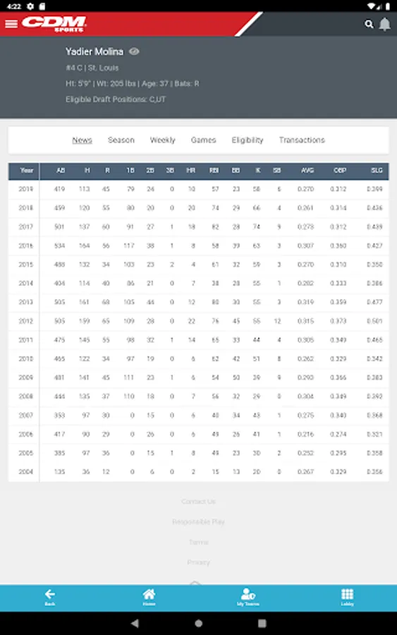 SportsHub Games Network was founded with the idea of providing a safe and secure environment for fantasy sports players to participate in the games they love. We have an unwavering commitment to provide a fun, fair, and protective experience to all of our users. We also recognize that there are circumstances where some players may need some assistance to ensure they are participating in a responsible and safe manner. Please utilize the responsible play link https://terms.shgn.com/termsandprivacy/responsibleplay?theme=cdm or the "Responsible Play" item in the account menu to ensure you have all the support you need to maintain a responsible, safe, and enjoyable fantasy sports gaming experience.