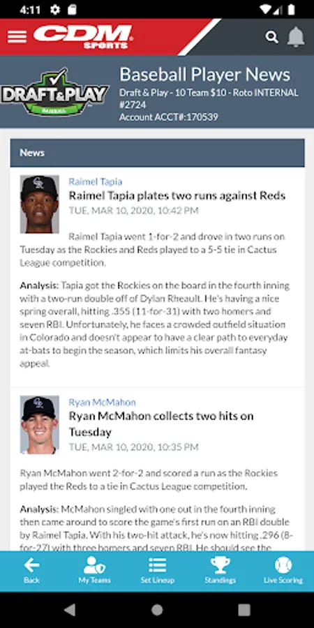 CDM Sports operates some of the industry's longest-running season-long contests in baseball, football, basketball, hockey, golf and auto racing having started in 1992. Contest offerings include Salary Cap, Pick'em, Survivor, and Draft & Play games.