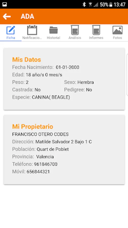 It provides information organized in all relevant aspects of the pets sent to the Veterinary Centers Nexos centers.