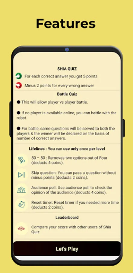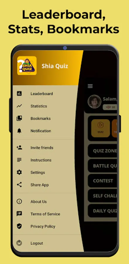 1. Easy sign-in through Google, Facebook. You can also create your own Shia Quiz account.
