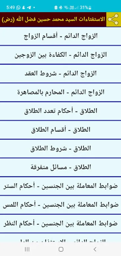 A fatwa application that contains all the questions and answers by the eminent scholar, Sayyed Muhammad Hussein Fadlallah (may God be pleased with him)