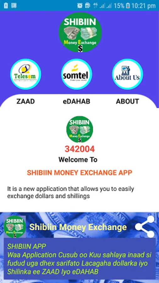 Sariflaha Shibiin Waxaad Ka helaysaa Isku bedelka Lacagaha Dollarka Iyo Shilinka Wakhti Kasta