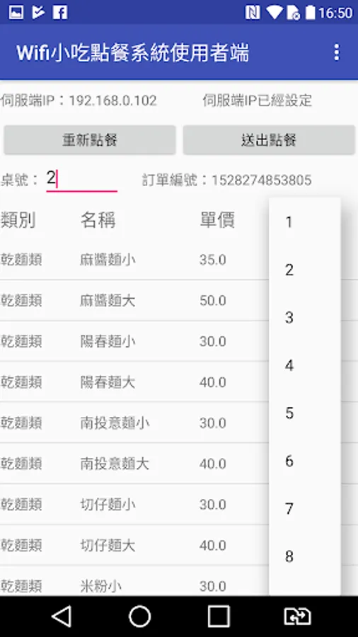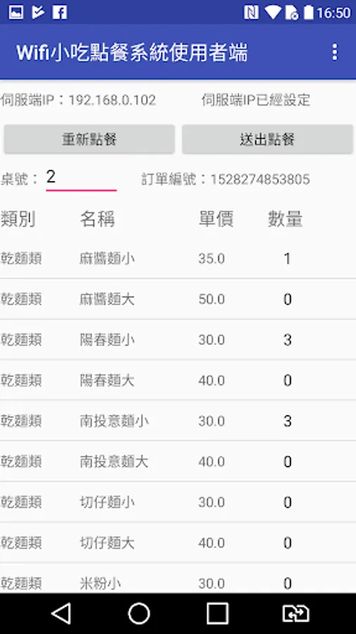 The user side of the Wifi Snack Ordering System needs to be used together with the Wifi Snack Ordering System server side of another application. It can be installed on the same device or different devices, but the IP must be obtained from the same IP sharer.