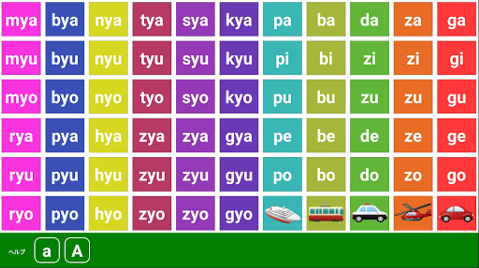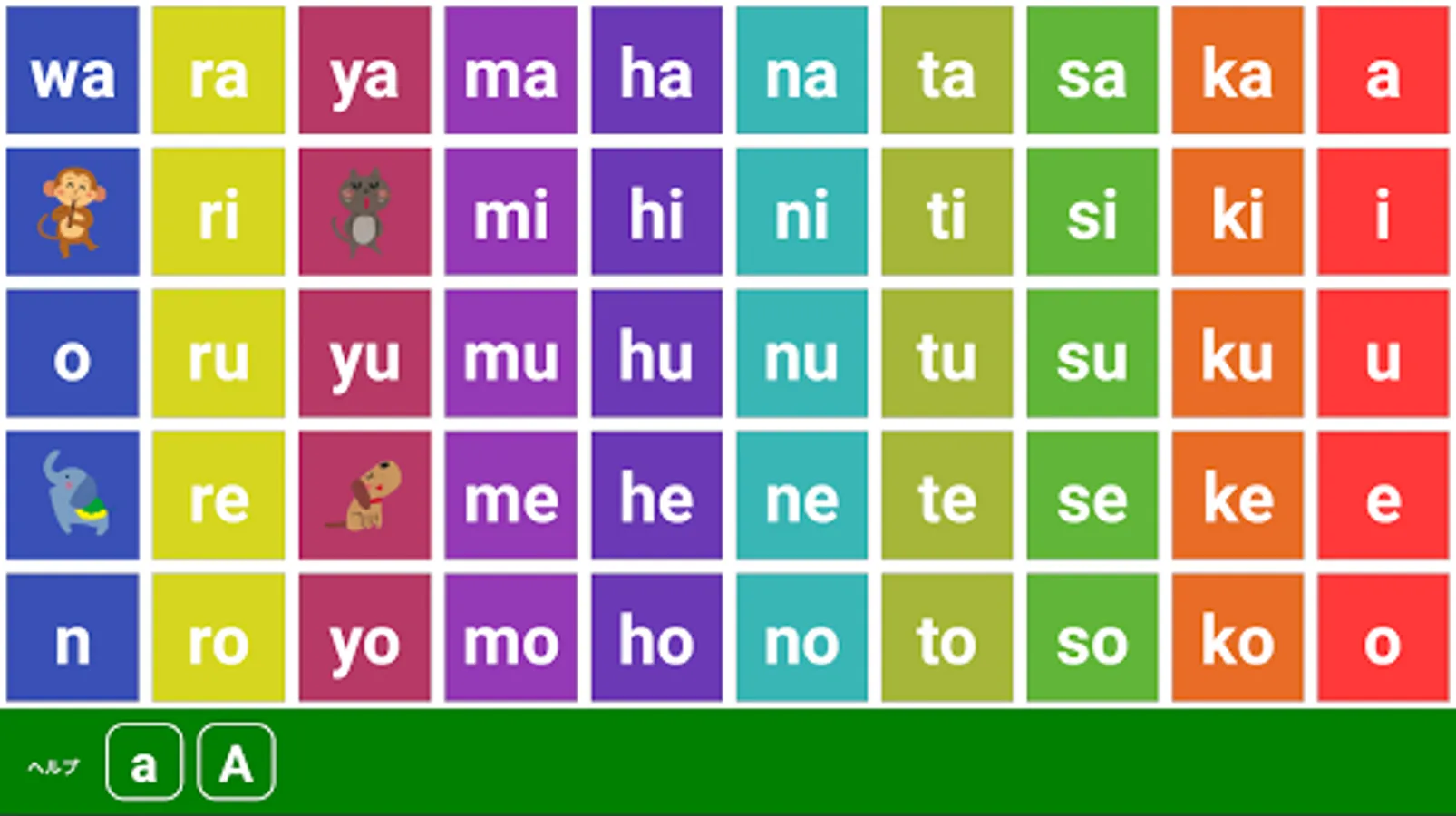 ・ Romaji table display (50 sounds, muddy sound, semi-turbid sound, roar)