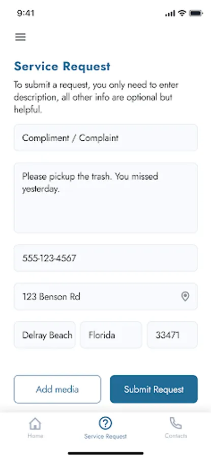 The list of service request categories can be customized to your association and can include but not limited to Danger/Hazard, Noise and Sound, Trash/Garbage, Illegal Parking, Street Signs and Lights, Pet Waste/Pets Off Leash, Sidewalk Cracked/Raised, Graffiti or Mischief, Environmental Issues, Flooding/Irrigation, Bees, Rodents or Pests, Landscape Attention, Code Compliance, Street Maintenance, Wildlife, Fountains/Drainage