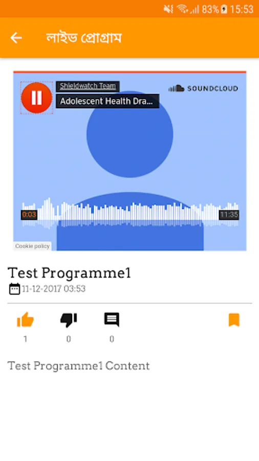 The app allows people to listen radio programmes, view programme schedule, show interest to participate in the radio programmes and give feedback. You can explore popular programmes, programmes broadcasted on specific issues/dates and share the programmes in social media platforms. There is a special section for users to share the personal stories. Apart from that upcoming programme details will be available in the app. Bookmark and Request functionality will also be there. The programmes are in Bengali and Santhali (Tribal Language).