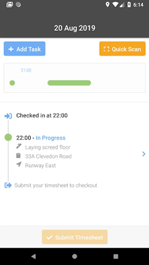 Check-in when you start a task and check-out once complete. At the end of the day submit your timesheet for approval. Track easiest way to make sure you get paid for your hard work.
