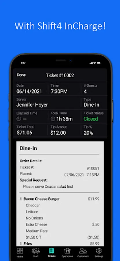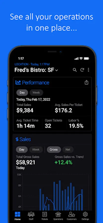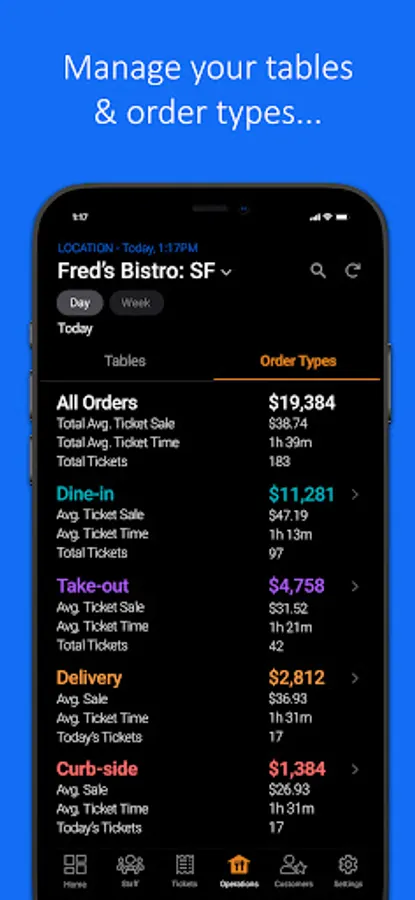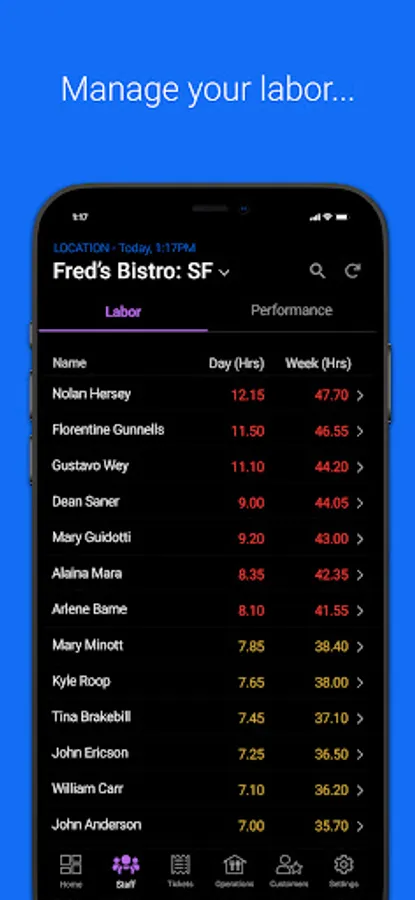 -View staff member performance, including hours, sales, tips, ticket time, and more