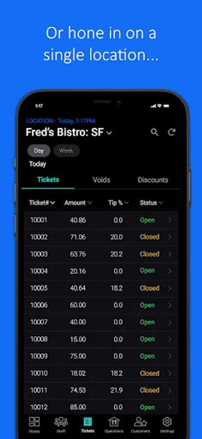 -Ability to view stats from multiple locations or hone in on a single restaurant