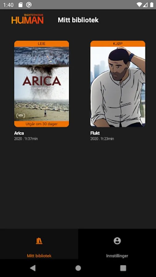 Få årets utgave av Human International Documentary Film Festival i din egen stue. Human Online er en streamingtjeneste som gir deg muligheten til å se gode dokumentarer hjemme. Vi tilbyr norske og internasjonale relevante dokumenter i kombinasjon med debatter og samtaler. Festivalen består av to konkurranseprogrammer og et mangfoldig filmprogram med fokus på menneskerettigheter og samfunnsspørsmål. Praktisk informasjon. Lag din profil og leie filmer online. Spill filmene her og stream til Chromecast eller Airplay. Last ned filmer for å se senere. Alle filmene er tilgjengelige i hele Norge.