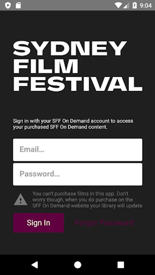 To get started, log in to your account using your Sydney Film Festival credentials and browse your library of purchased films. To purchase a new film, head back to www.sff.org.au and it will appear in your app.