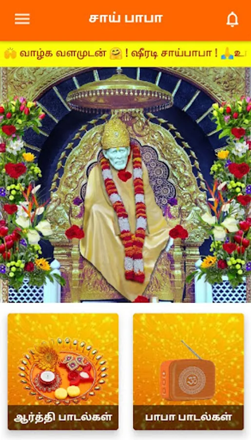 You will be happy to see such a nice collection with great presentation to Listen the Lord Sai Baba cordially touches Bhajans or songs with shell शंख and bell sounds by click on their respective icon image and imaging flower flow on Shirdi Sai Baba by the user controlled in one single application with Lyrics and Mp3 Audio to Remove Obstacle and make wealthy.