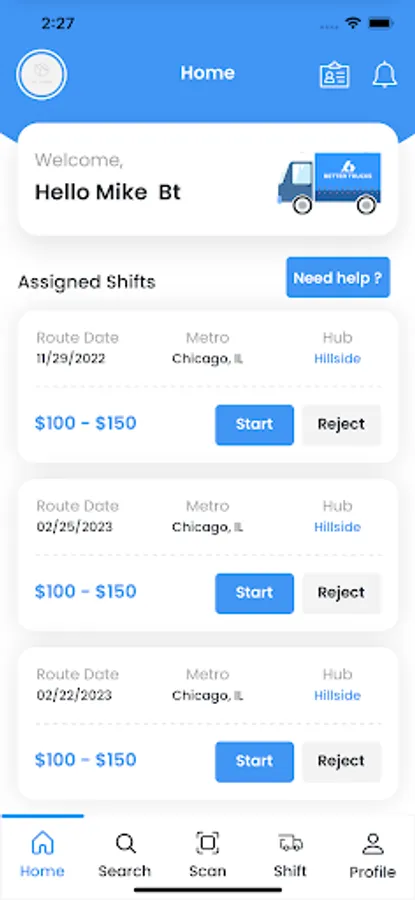 The Better Trucks Shift app lets delivery drivers across the country sign up, drive, and get paid the same day for shifts that they work. Sign up today and get paid every day you work with our team!