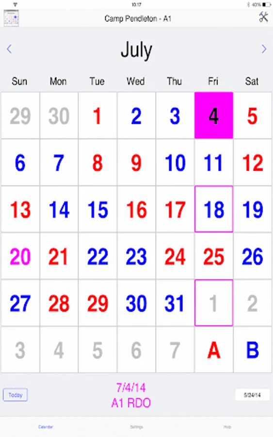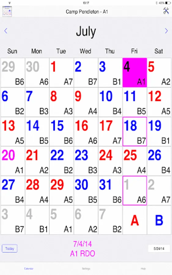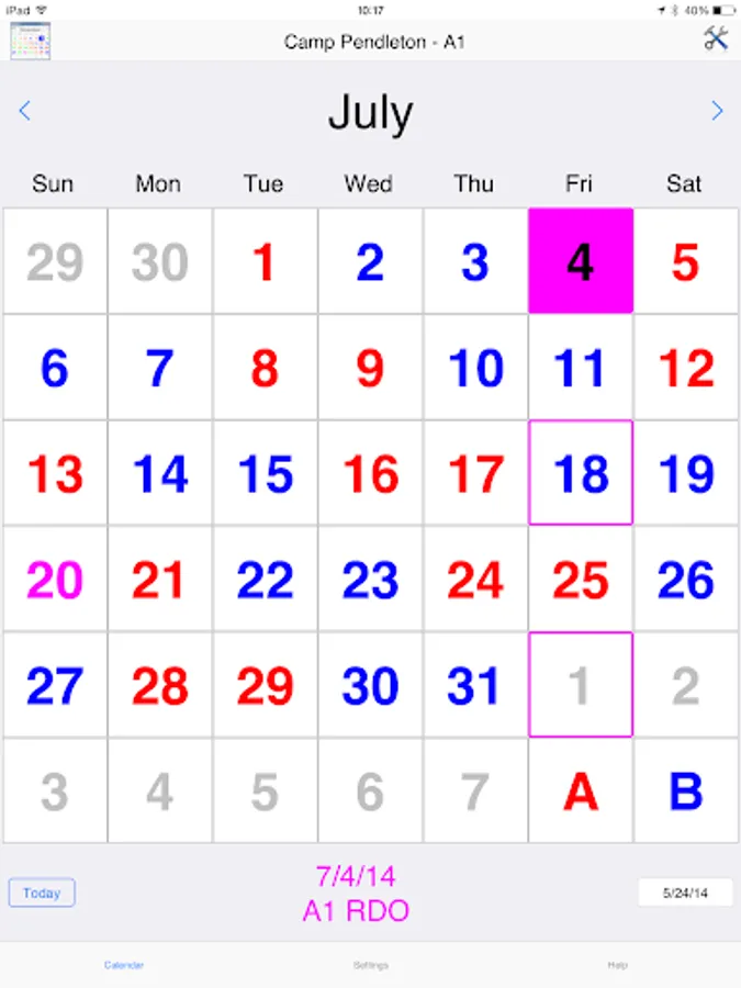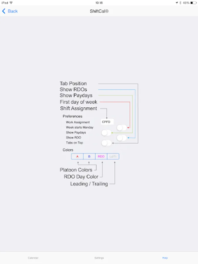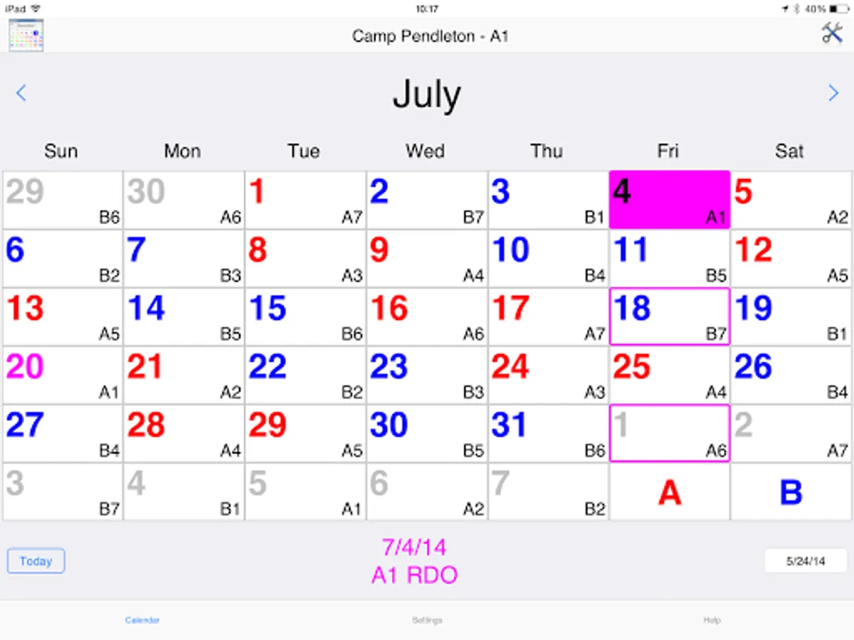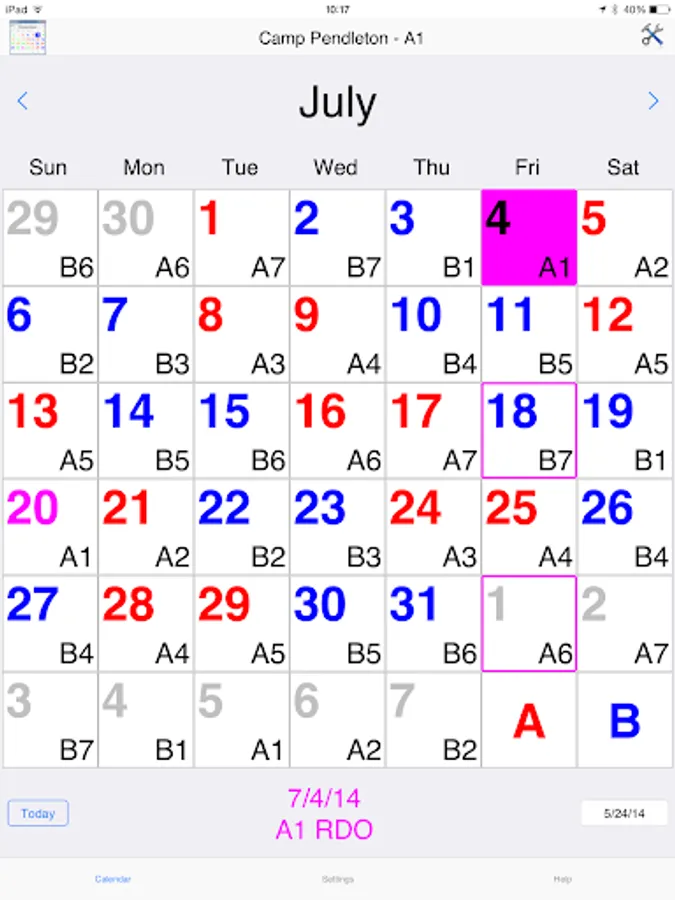 Note: this is a shift calendar, not an appointment calendar (you already have a good one on your device).