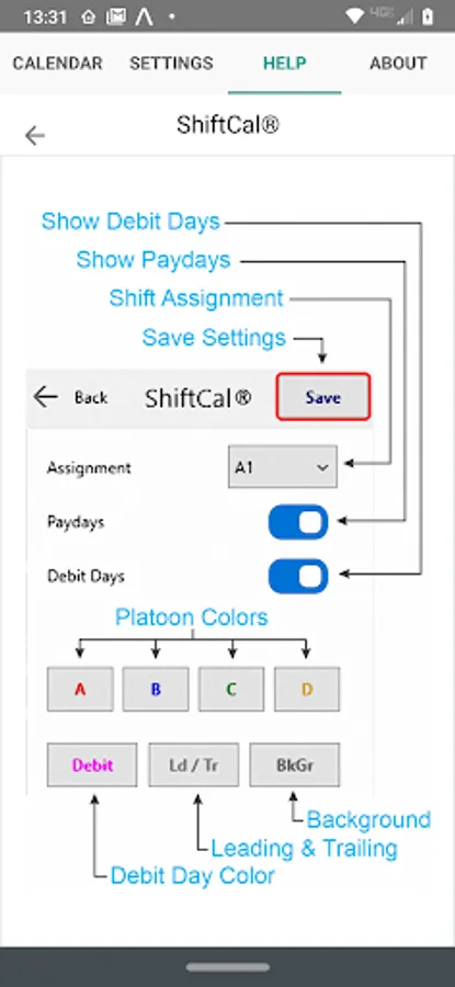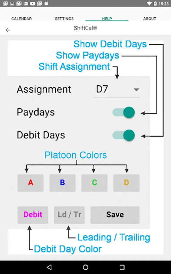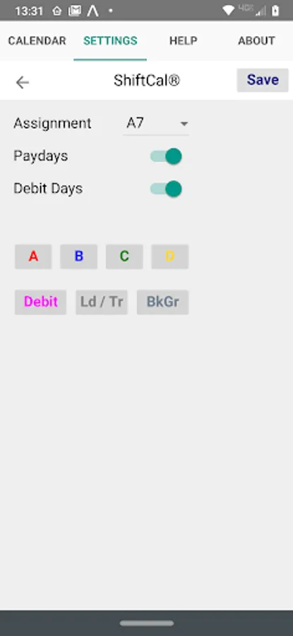 Note: this is a shift calendar, not an appointment calendar (you already have a good one on your device).
