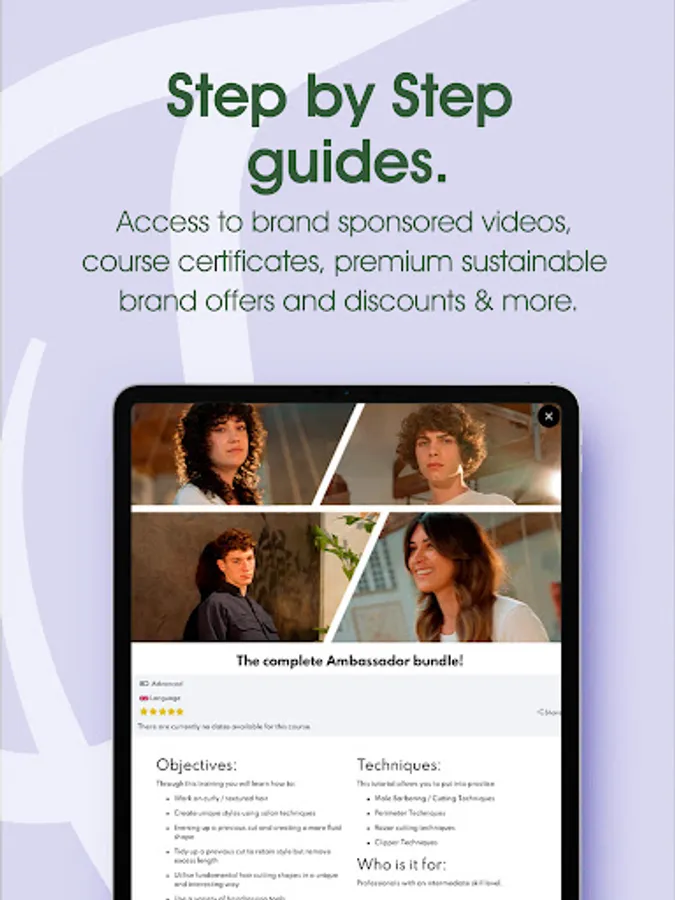 You will have access to constant new resources available, and to dozens hair cutting tutorials. You will get the industry insights and tips and tricks from leading industry experts with unique and exclusive content that allow you to evolve in the hairstyling industry. And much more!