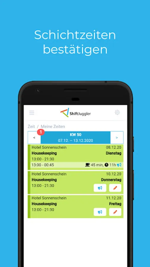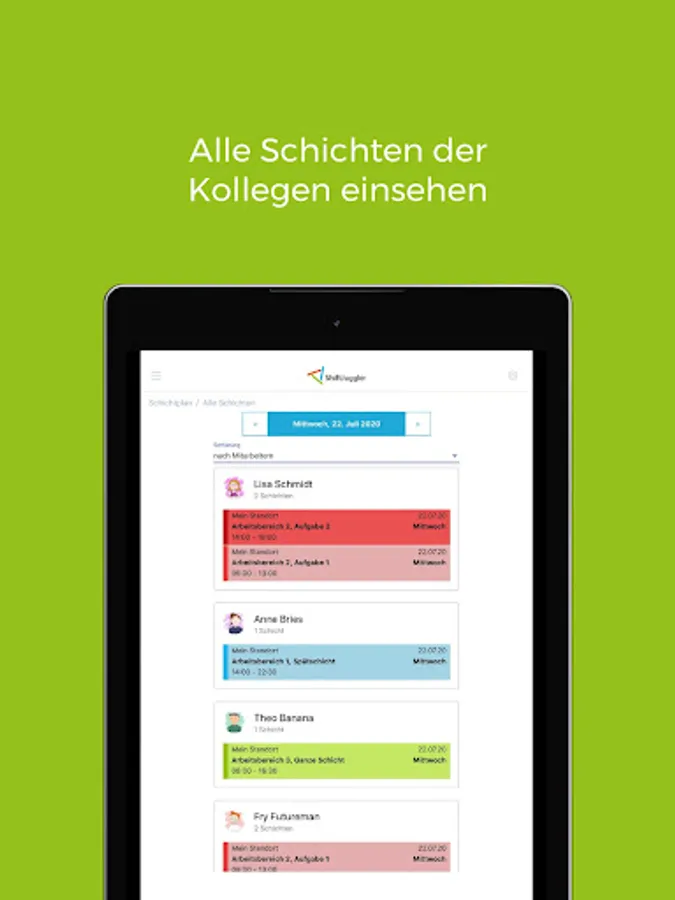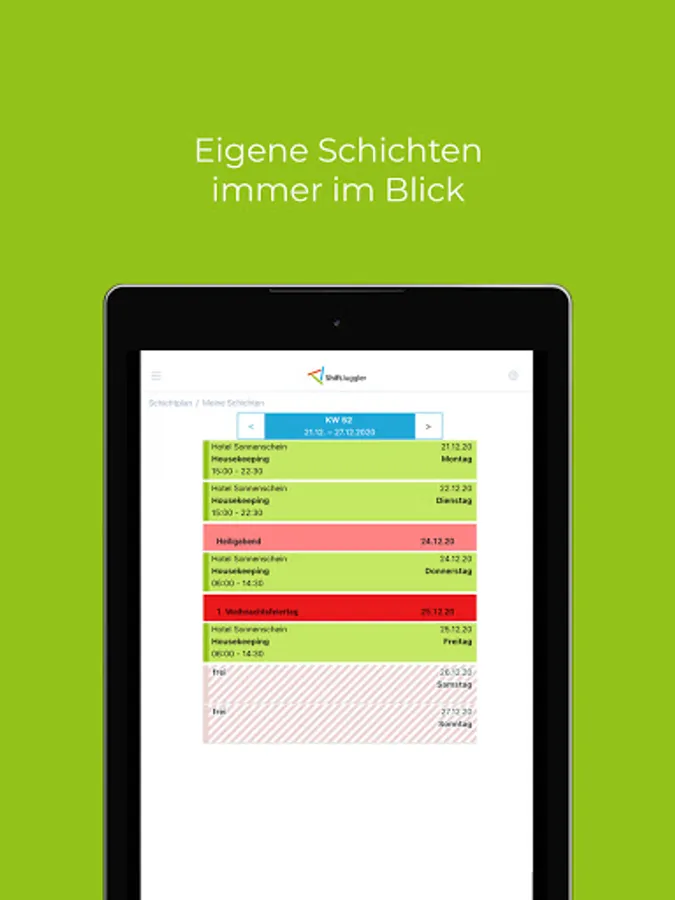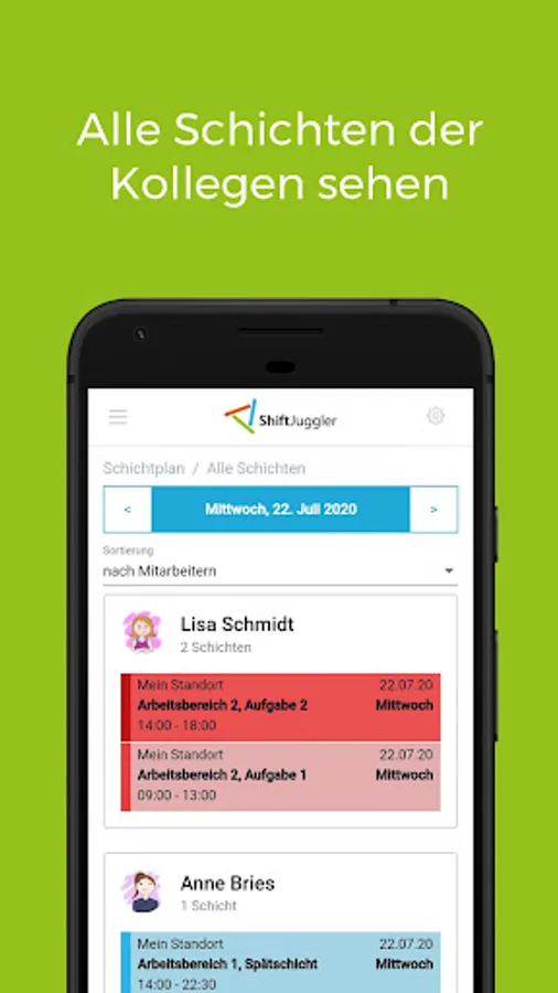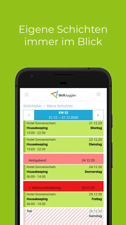 With ShiftJuggler you can see your current roster and all changes at any time on your mobile device. So you are always up to date, even with short-term changes to shifts.