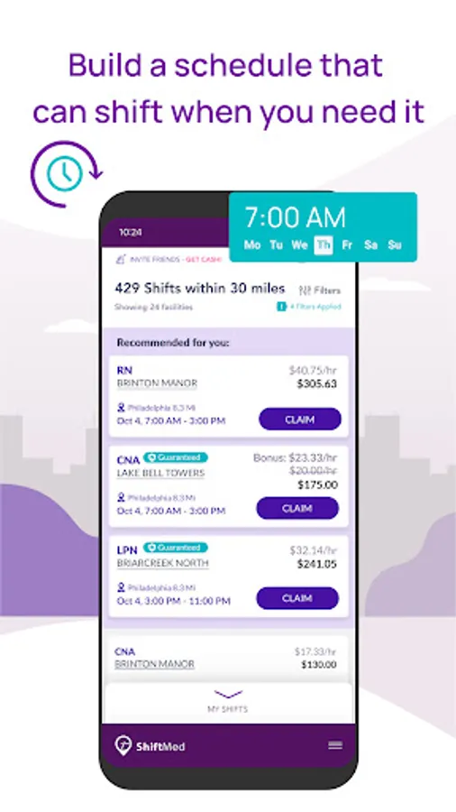 - Claim Guaranteed Shifts® to get paid for the ENTIRE shift if the facility cancels.