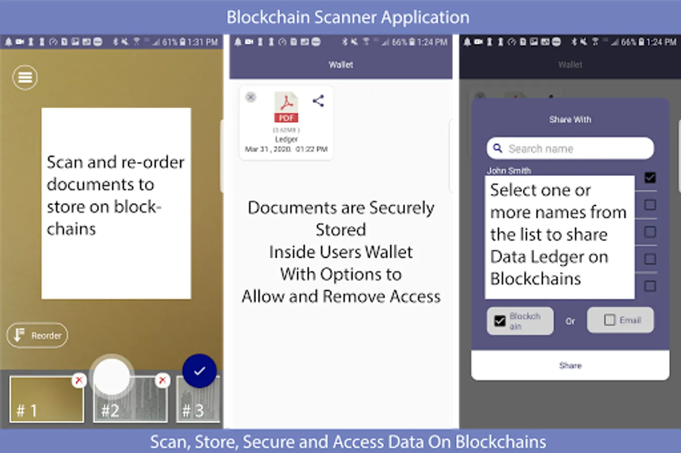 Quickly scan automotive documents, secure them with blockchain, and share with enterprise applications, businesses, or financial institutions - whether standing next to the car, in the office, or out on the road.