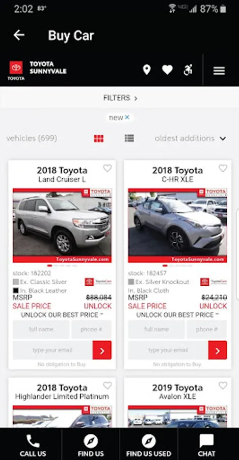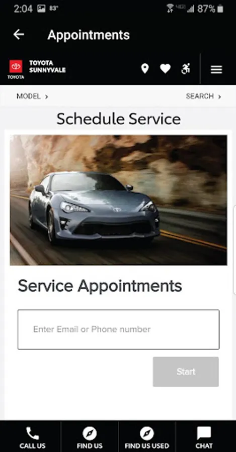 2. If you've already purchased a vehicle from Toyota Sunnyvale, your vehicle record will be automatically displayed.