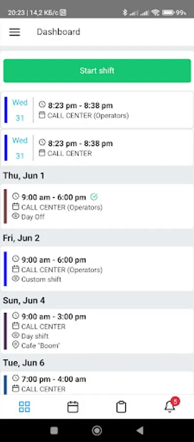 The web-version of Shifton app proudly presents the following features:
