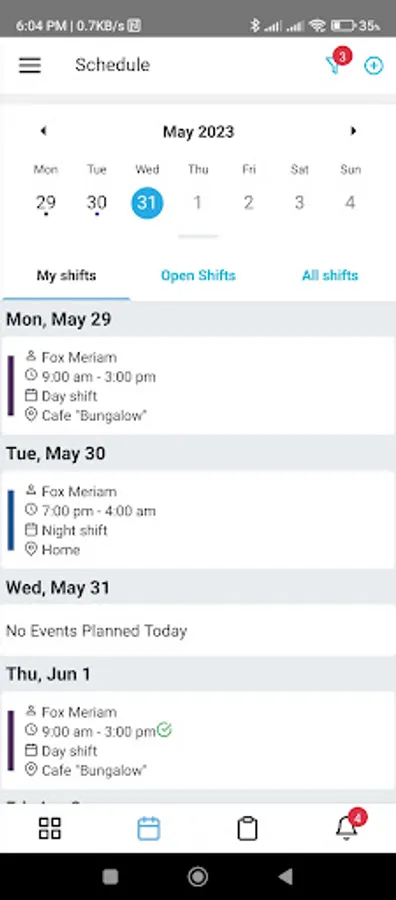 * See current schedules and shifts