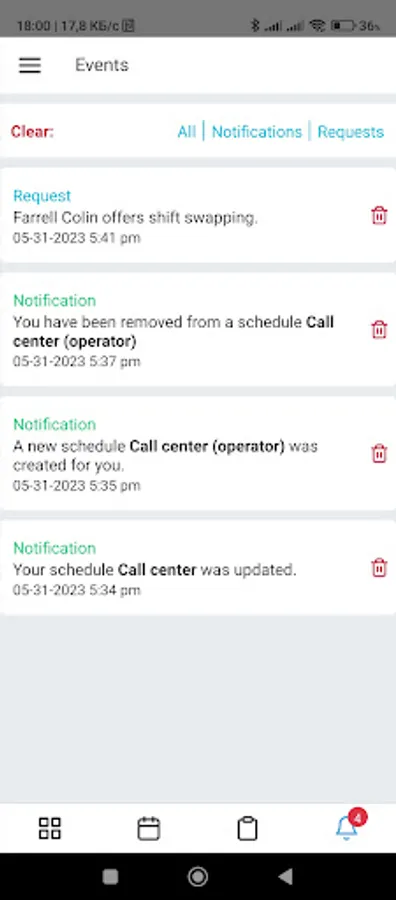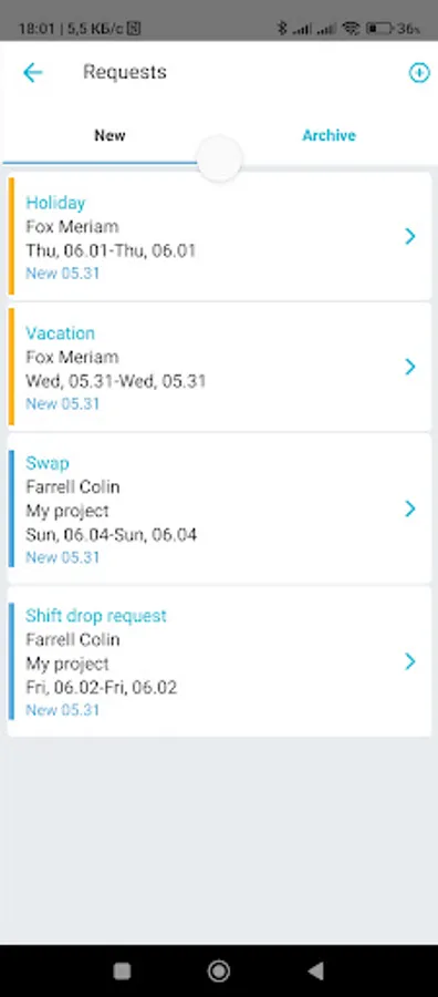 - Exchange of shifts between employees, if necessary carried out with the confirmation of the manager.