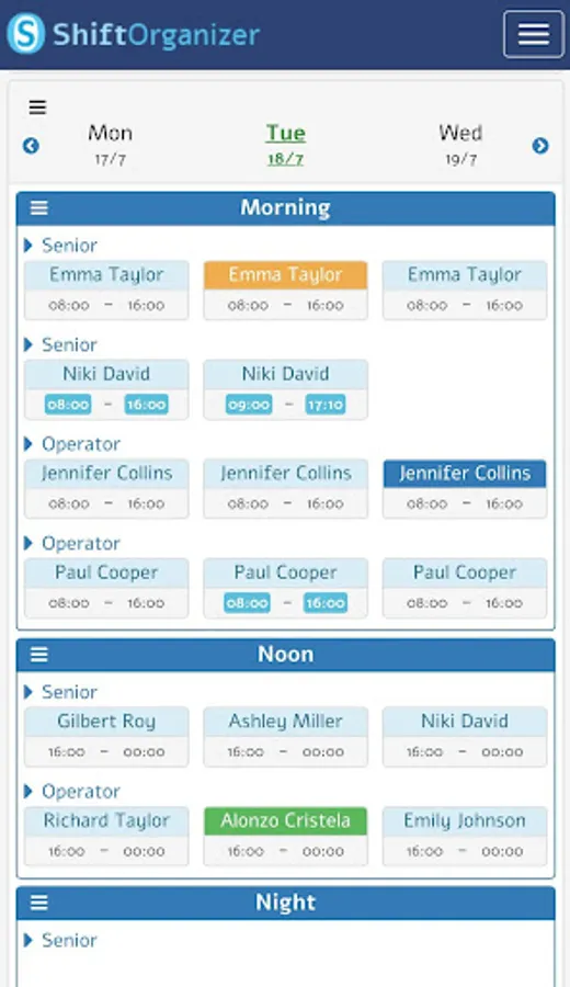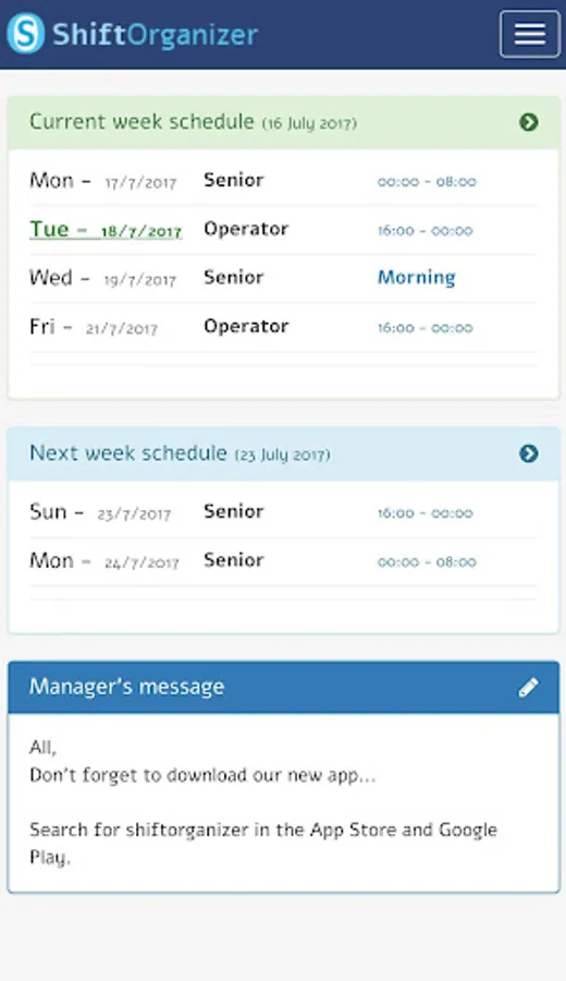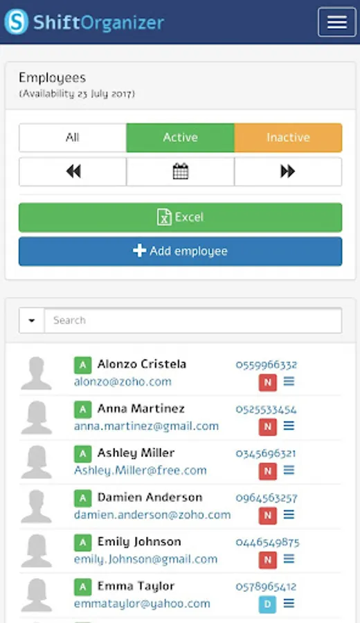 ShiftOrganizer application gives managers and employees an easy access to their schedules, availability and shifts replacements right from their mobile devices.