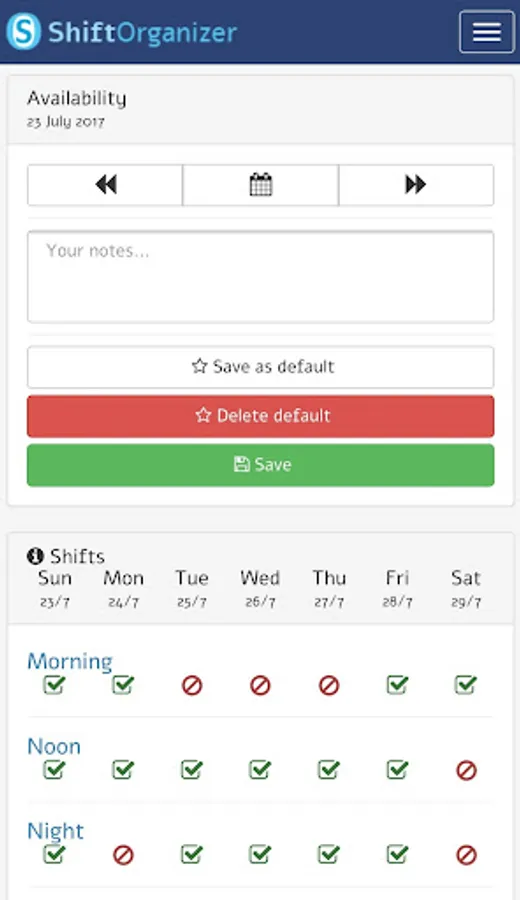 For technical issues please contact our support via email: support@shiftorganizer.com