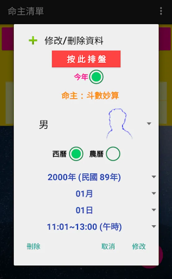 f. If the year, month, day, and hour of birth are not selected, the system will also automatically generate: (current year) January 01, 11:01~13:00 (noon).