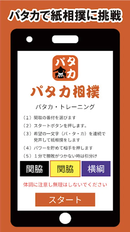 (3) A paper sumo wrestling is performed by continuously generating the desired character (pa ta ka) that you want to train.