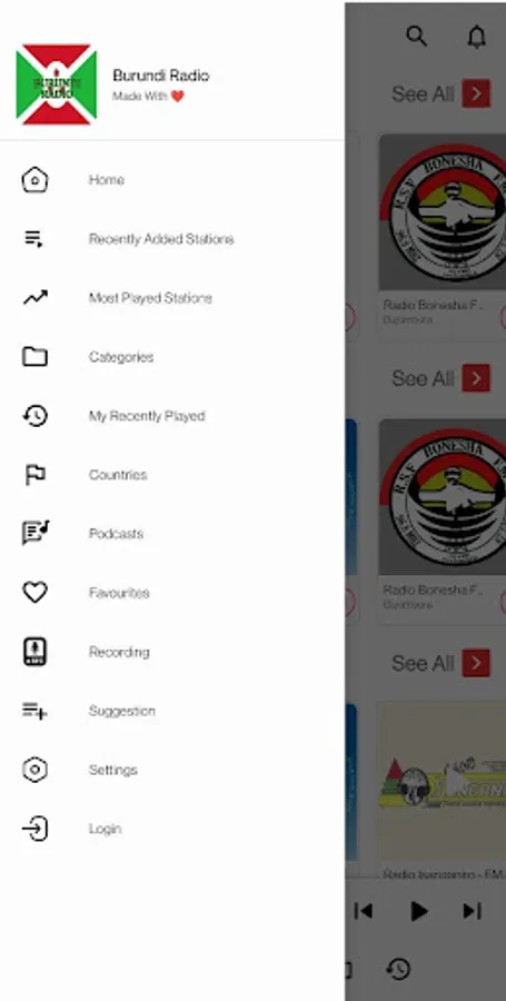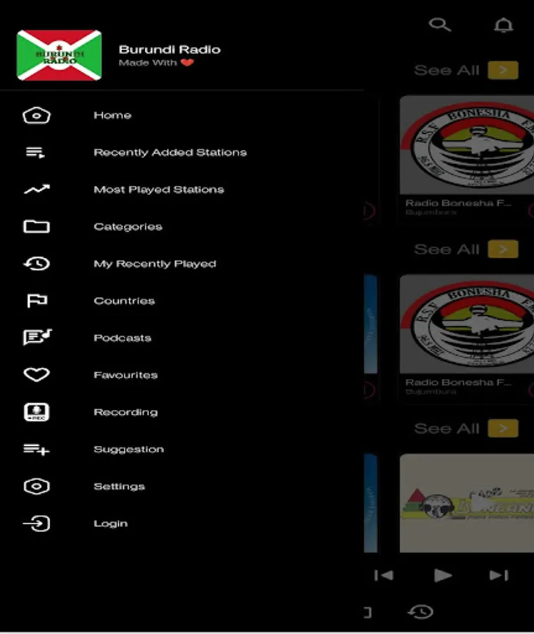 Experience the modern, elegant, and user-friendly interface that enhances your radio journey. Enjoy access to all available Burundi Radio Stations, making your listening moments truly delightful. Available radio stations include: