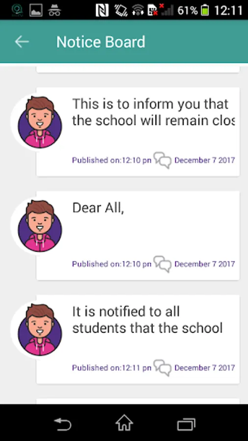 • Notice board for timely notices, events/Holidays in school, share files