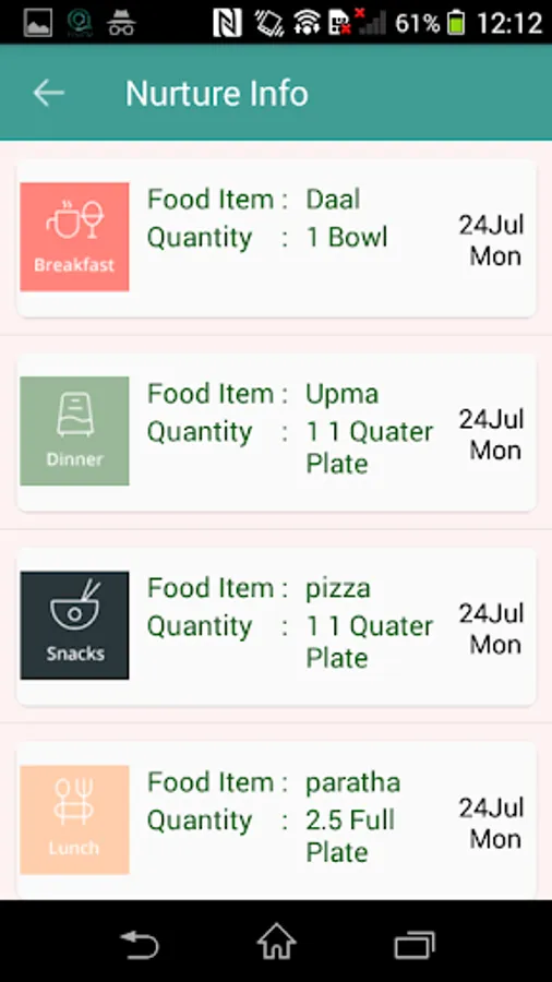 • Weekly/monthly food menu details for the kindergarten kids
