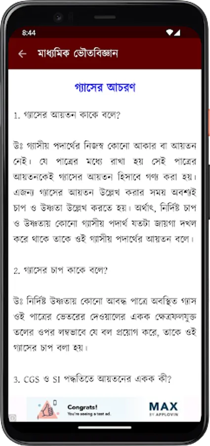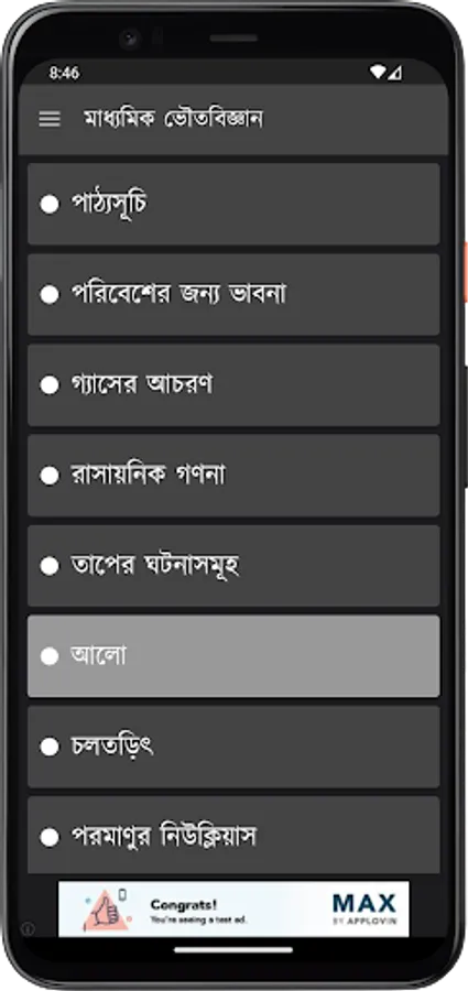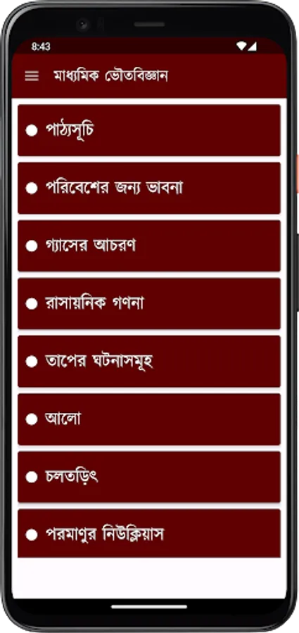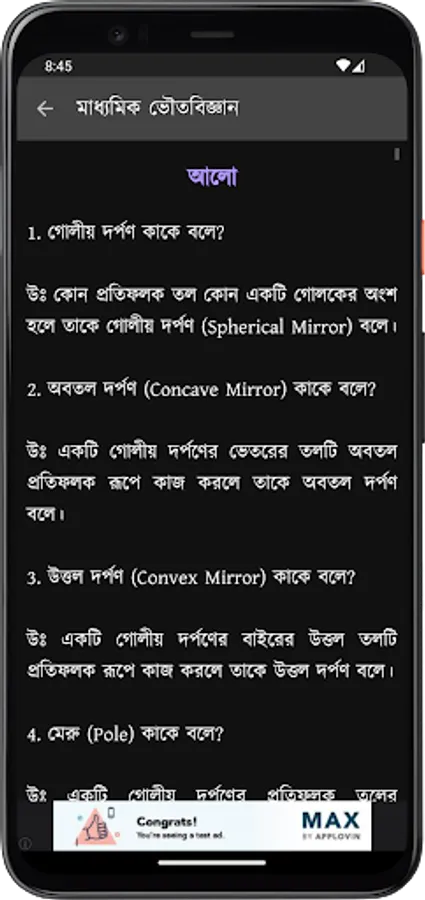 Madhyamik Physical Science app consists of questions and answers of West Bengal Madhyamik Syllabus. In this app the detailed questions and answers of various topics of the syllabus are served very carefully. It is hoped that Madhyamik Physics app will greatly help the Madhyamik students to prepare for their upcoming Madhyamik exam Physics subject. Not only Madhyamik Physical Science candidates, Madhyamik Physical Science app also helps in various competitive exams like PSC, SSC, WBCS, UPSC, CGL, TET, C TET, Group C, Group D , NET, SET, various school-college exams etc. will be very useful for the candidates. After all, if the Madhyomik Physical Science app benefits its users, we will consider our efforts worthwhile.