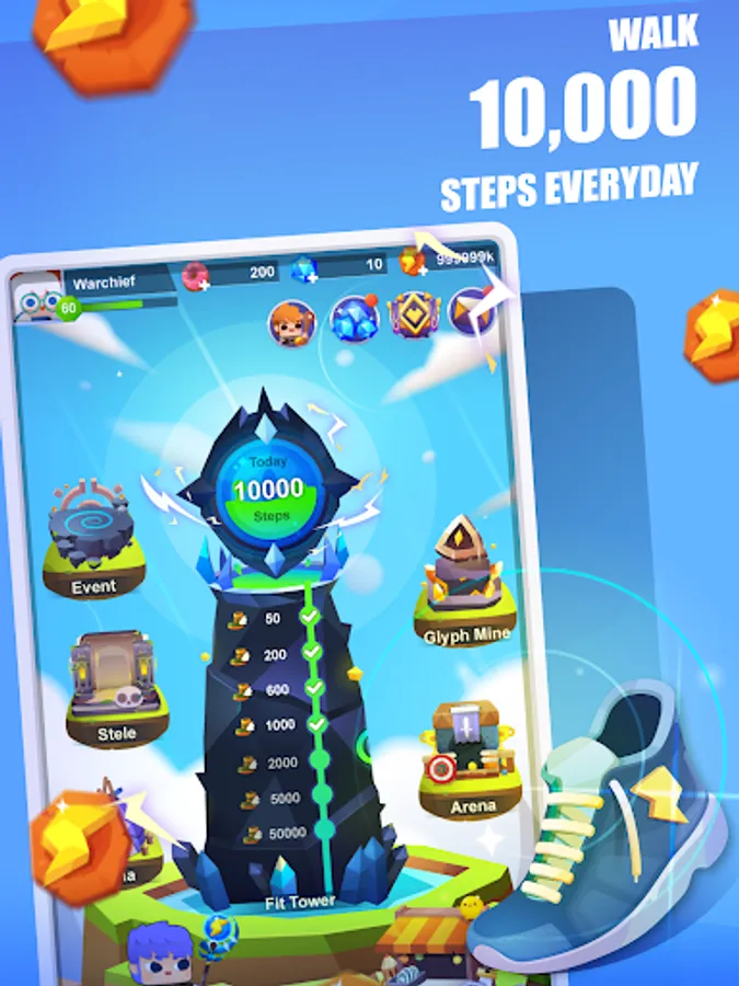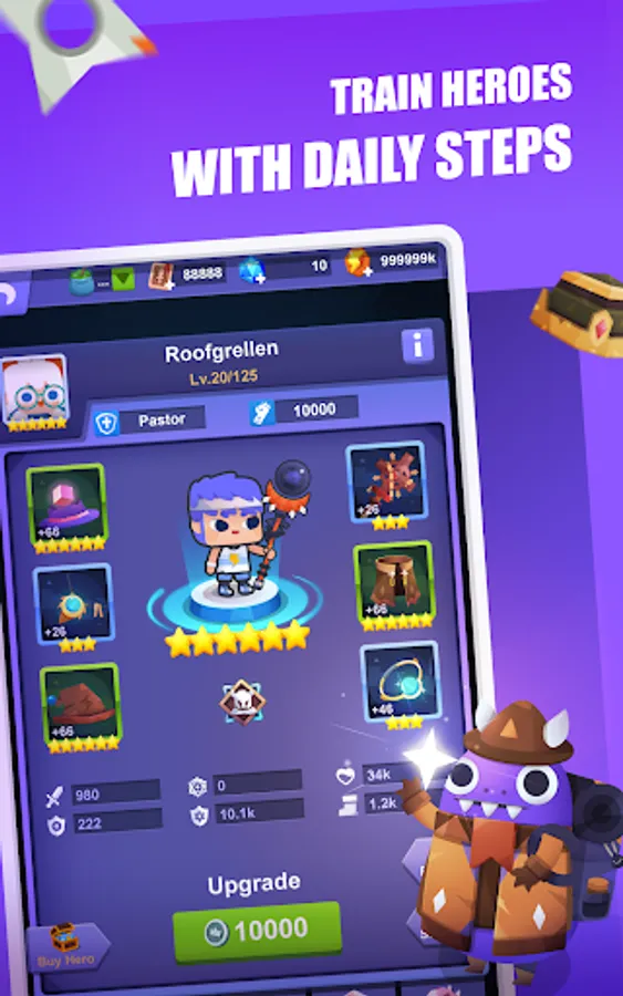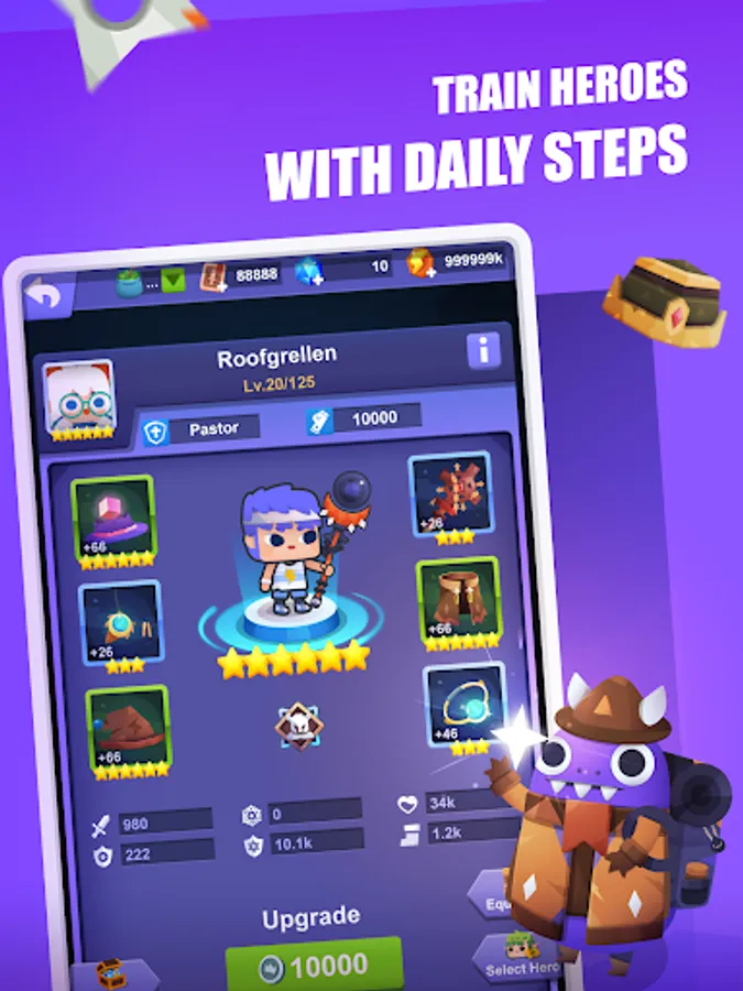 PEDOMETER + RPG! Train your team of heroes with fitness goals, as you engage in pedometer games. The more activities you complete, the stronger your heroes become! Fit for battle! Let's take on challenges together and embark on the journey of becoming the new best you in this fitness RPG!