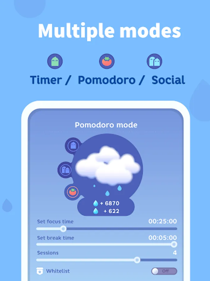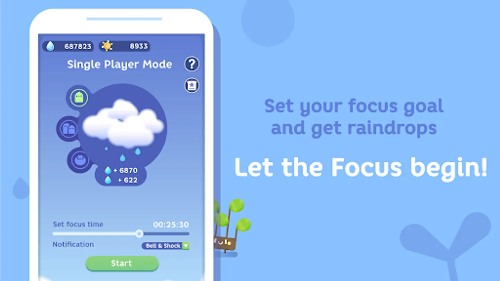 * Stay focused - Collect raindrops when you put down the phone and focus concentration