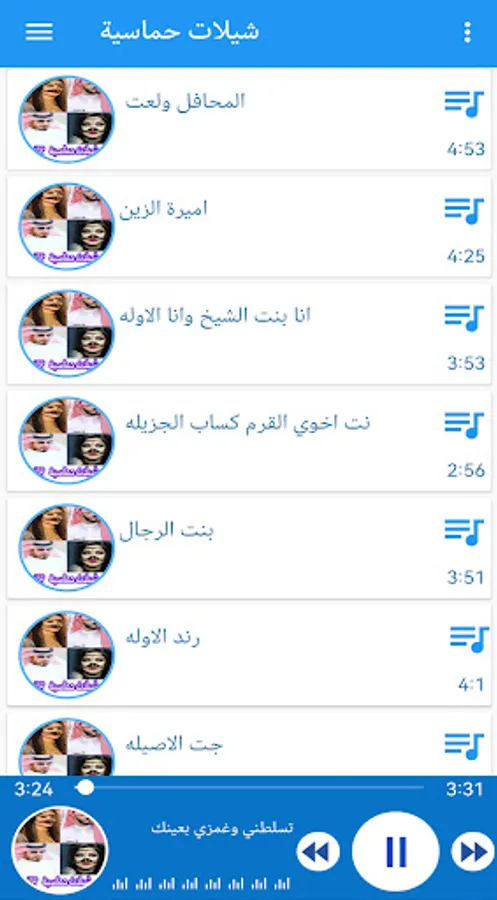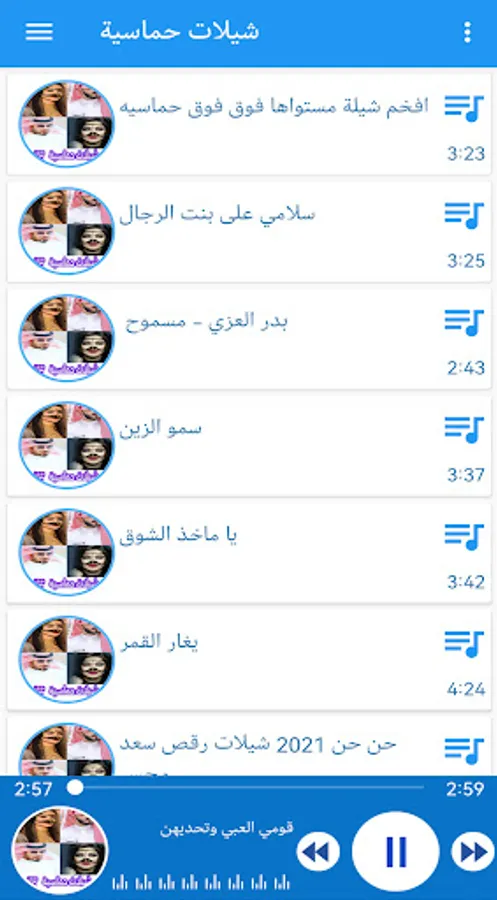 => نرجو الاستماع لجميع اغاني شيلات حماسية الموجودة في هذا التطبيق ، وقدم لنا ملاحظاتك