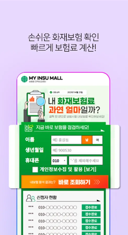 The direct fire insurance home restaurant apartment comparison site recommendation app provides a fire insurance comparison estimate service with a simple information input procedure without requiring unnecessary authentication such as an official certificate.