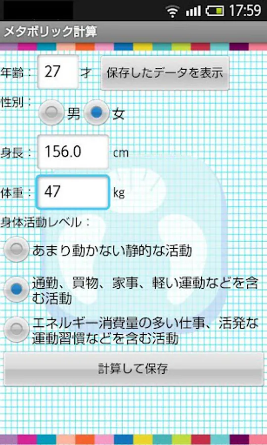 Input age, sex, height, the weight, a physical activity level